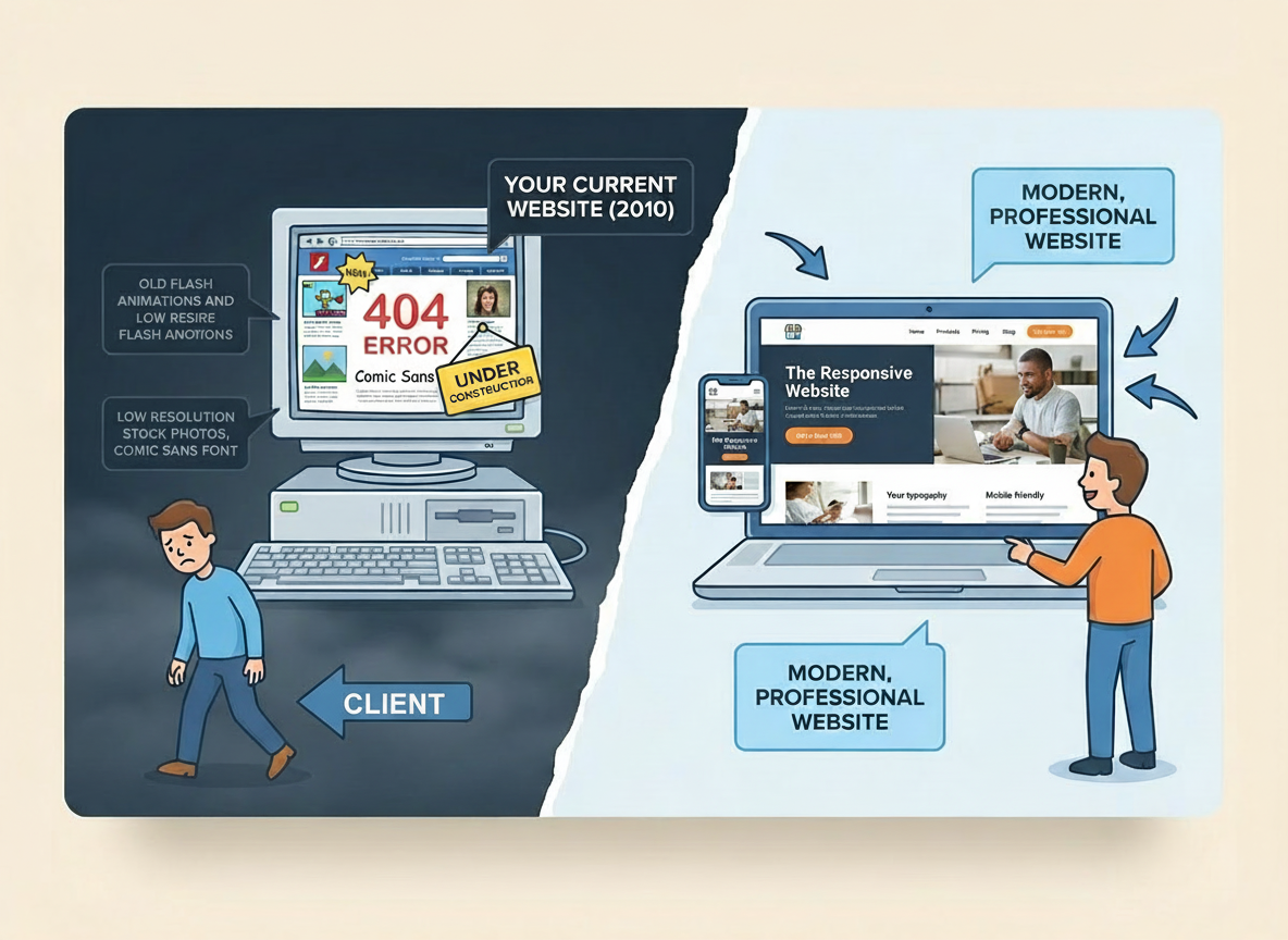Customers judge you in 3 seconds flat. An outdated website screams "unprofessional" and sends potential jobs straight to your competitor down the road.